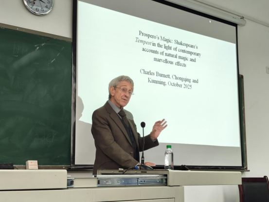 应外国语学院邀请,2025年10月30日下午,伦敦大学瓦尔堡研究所“欧洲阿拉伯 / 伊斯兰影响史”教授、英国学术院院士查尔斯·伯内特(Charles Burnett)于外院309教室开展了题为“Shakespeare’s Tempest in the light of contemporary accounts of natural magic and marvellous effects”的学术讲座。本场讲座是外国语学院“北谭学术沙龙”系列讲座之一,由我院郝桂莲教授主持,外国语学院师生参加了此次讲座。