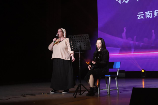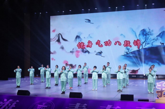 卢培林同学以一首《天地龙鳞》震撼开场,激昂的旋律唱出文化自信的力量。创意节目《青春不散场》将皮影戏与校园记忆巧妙融合,展现外院学子的创新精神。蔡钟倩老师、张丽虹老师带来的《岁岁》深情回顾外院小语种专业的发展历程。徐蔚老师的藏族舞《爱的暴风雨》以优美的舞姿展现民族风情,赢得满堂喝彩。教师团队表演的《八段锦》则在一招一式中彰显中华优秀传统文化刚柔并济的智慧。