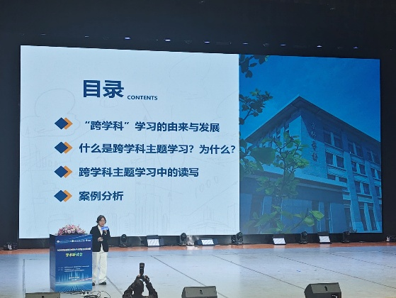 北京师范大学钱小芳教授围绕《中小学跨学科单元主题教学中的英语读写设计》,指出跨学科主题学习是落实学生核心素养的重要载体,读写结合是贯通理解与表达技能、实现学科融合的关键策略。以真实跨学科任务统摄读写目标,引入多学科视角的语篇内容, 引导学生从语篇解析到意义建构的书面产出,实现学用一体。报告通过四个具体课例展示了跨学科教学的设计方法,为跨学科教学中落实核心素养指明了路径。