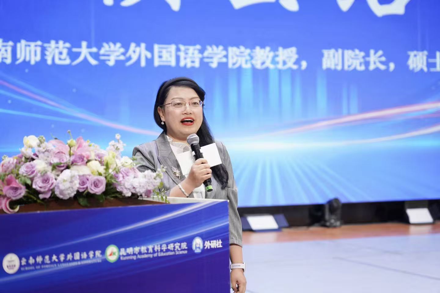 4月24日上午,研讨会在云南师范大学隆重开幕,会议由外国语学院院长黄瑛主持。副校长陈飞和外语教学与研究出版社阅读分社副社长刘秀玲分别致辞。陈飞副校长指出云南师范大学作始终立足云南,服务边疆,在外语教师教育、区域教育研究等领域形成了独特优势,为云南省乃至全国培养了大批优秀外语教育人才。他对大会召开提出了三点期望:以阅读为桥,筑牢育人根基、以贯通为要,深化协同育人、以服务为本,彰显师大担当。刘秀玲副社长也期望将以本次会议为契机,深化阅读教学改革,推动核心素养导向的英语阅读教育发展,促进大中小学阅读教学一体化研究协同推进。